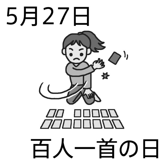 百人一首の日(モノクロ)/5月27日/今日は何の日?記念日のイラスト