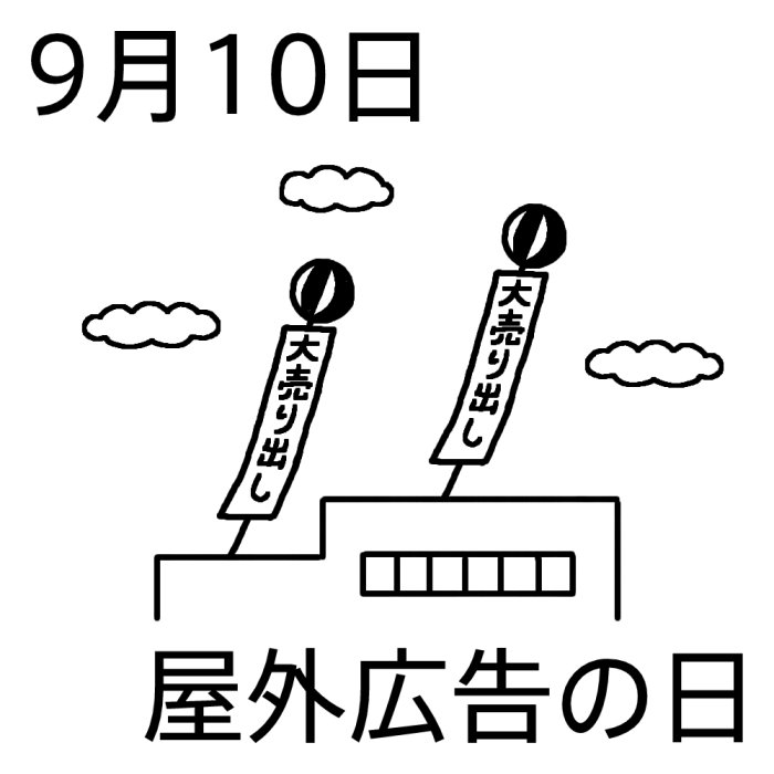 屋外広告の日(白黒)/9月10日/今日は何の日?〜記念日イラスト〜