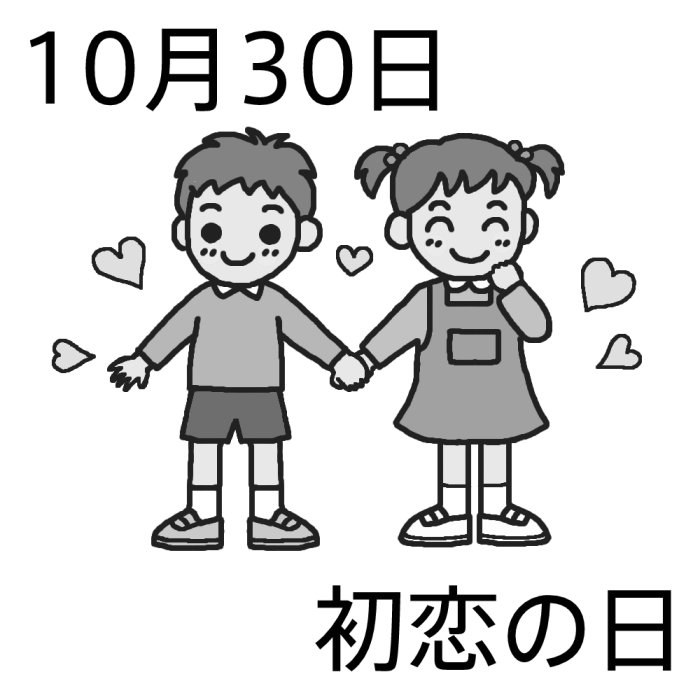 初恋の日(モノクロ)/10月30日/今日は何の日?記念日のイラスト